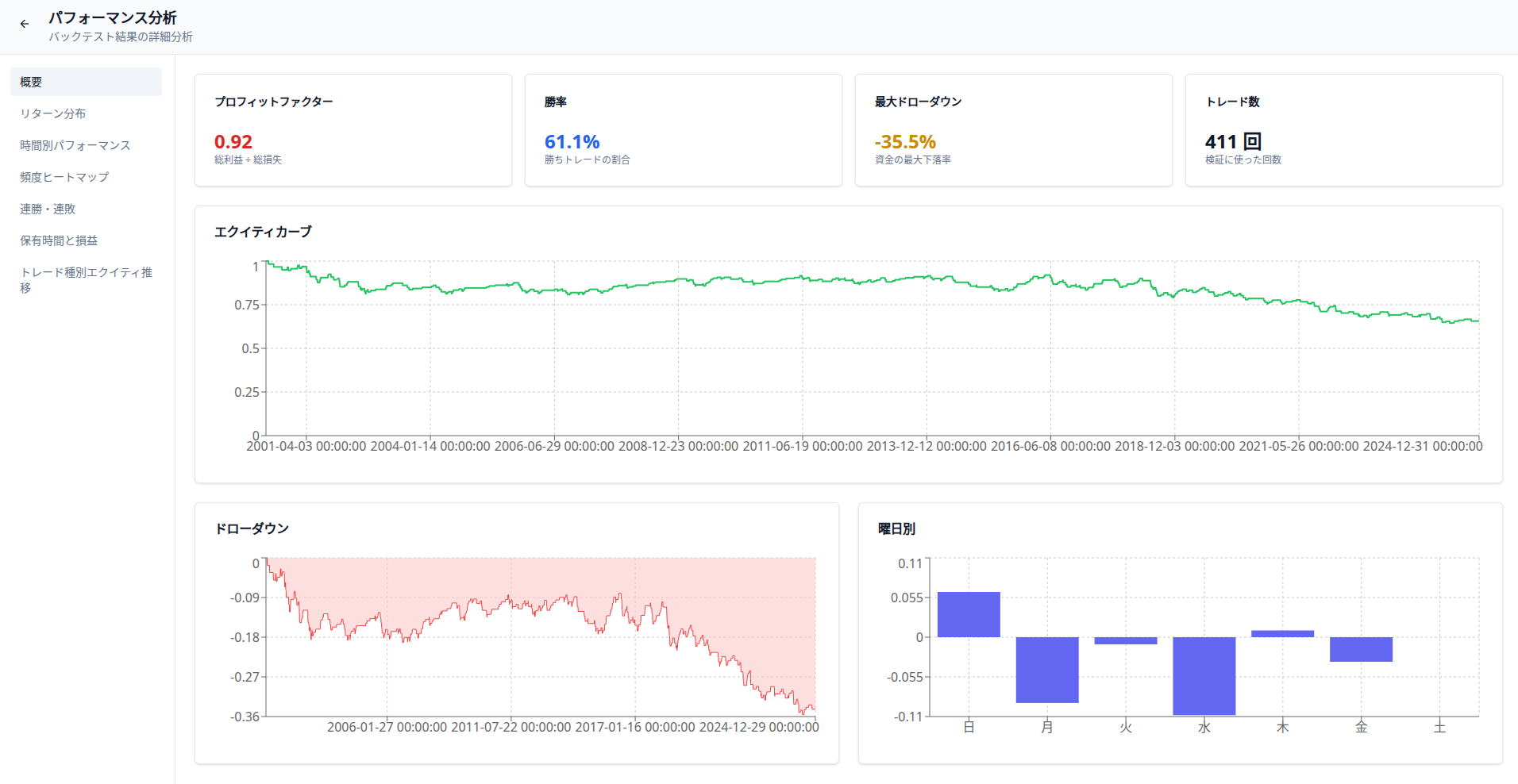 以下の写真はDelverのバックテスト分析画面です。