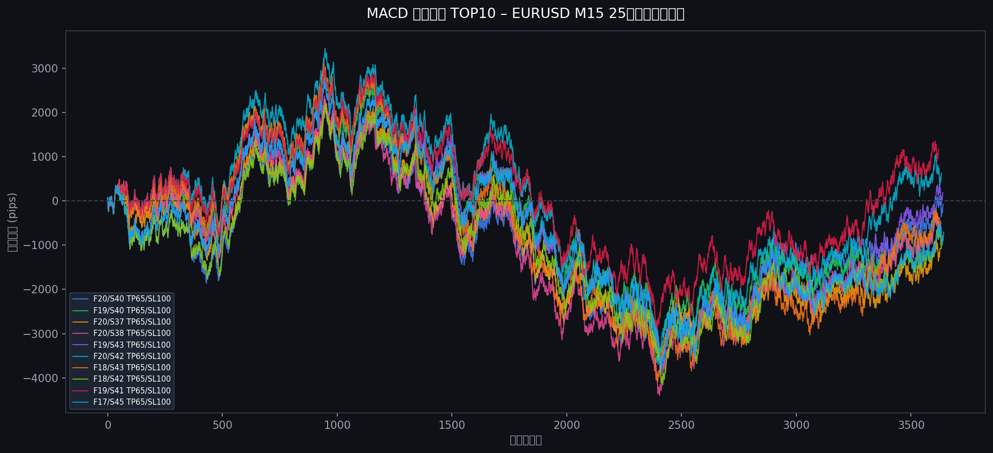 検証期間: 5年(EURUSD M15、2020年から2025年)→ 上位候補を25年で耐久テスト