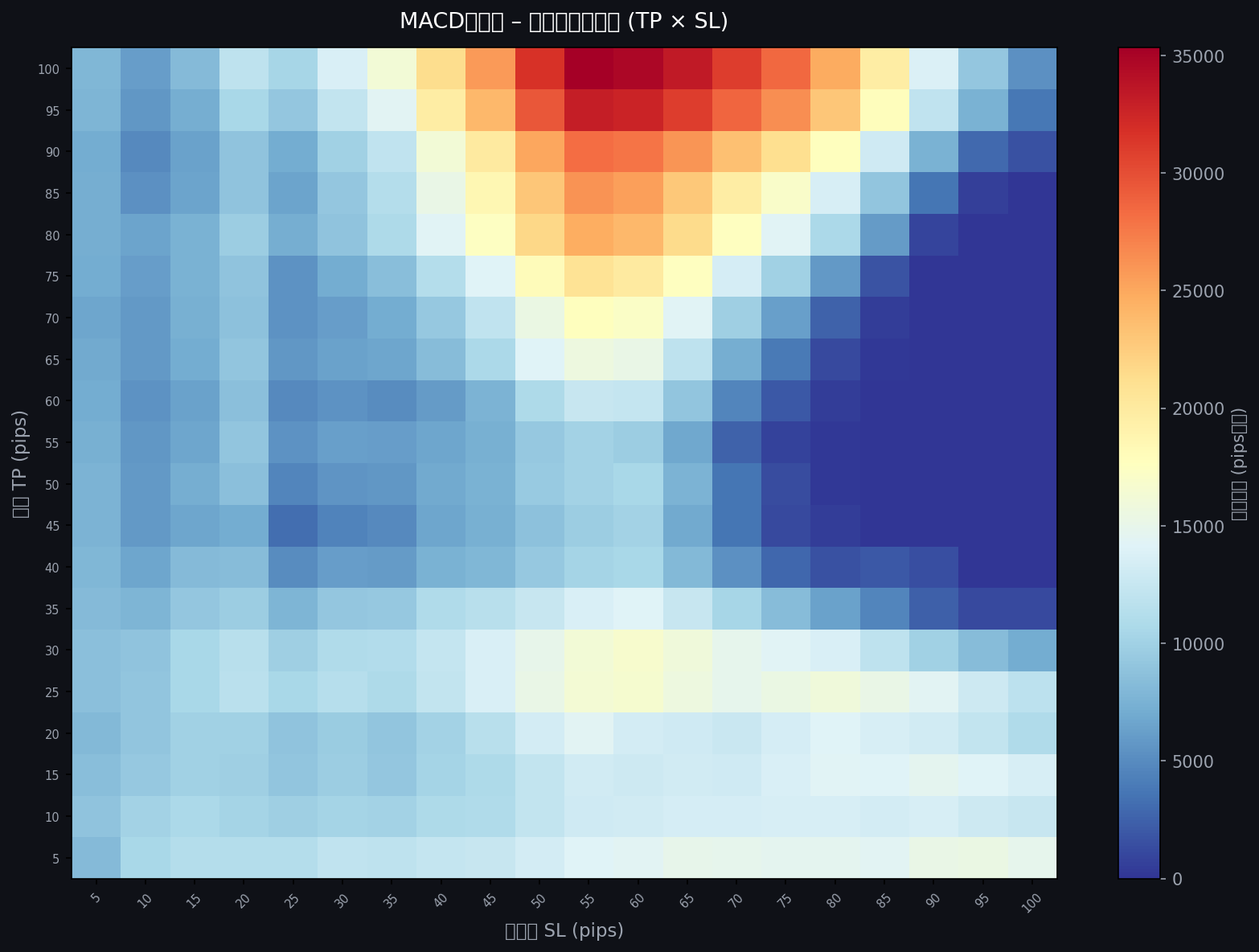 利確(TP): 5〜100pips(5pips刻み、20通り)