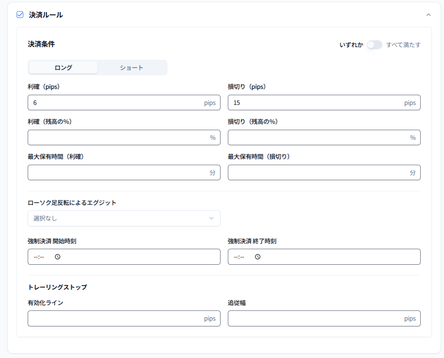 - 損切り:15pips(RR = 1:2.5)